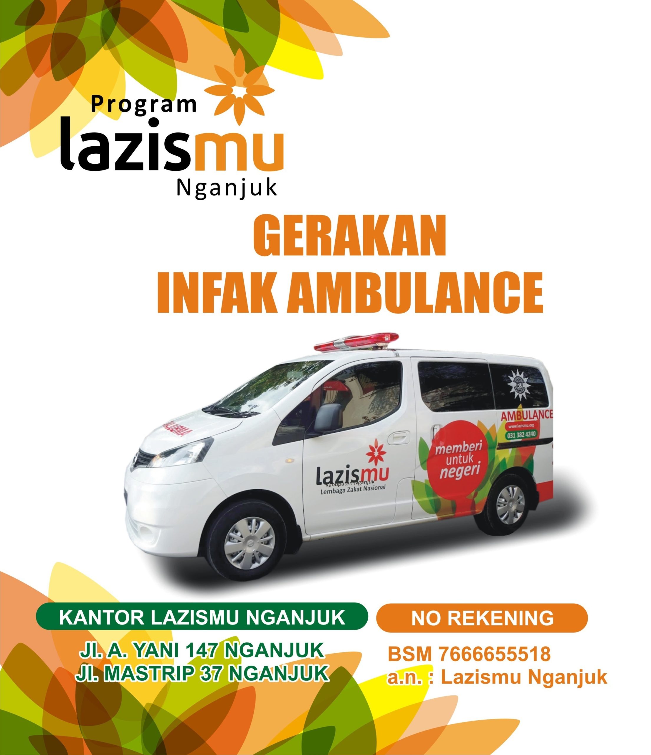 Lazismu Nganjuk –Lazismu Nganjuk akan menyelenggarakan kegiatan AmbulanMu yang akan menyediakan ambulance gratis bagi masyarakat Nganjuk dan sekitarnya. Kegiatan ini adalah salah satu upaya keluarga besar Muhammadiyah Nganjuk untuk memberikan pelayanan sosial kepada masyarakat luas.